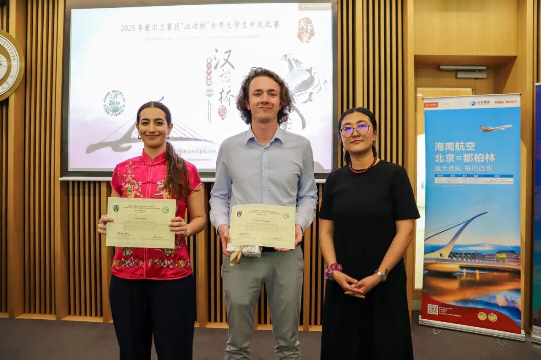 2025 年 4月13日,由中国驻爱尔兰大使馆教育组主办,都柏林大学孔子学院及都柏林大学中国研究院联合承办的第二十四届世界大学生“汉语桥比赛”爱尔兰赛区决赛在都柏林大学孔子学院成功举办。