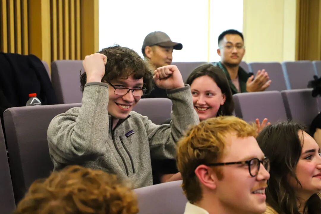 在等待比赛结果时,主持人与现场观众进行了趣味知识问答互动,内容涵盖中国历史、节日与传统的趣味文化问题,使观众在轻松的氛围中进一步加深了对中华文化的了解与兴趣。随后,来自海南航空的吴瑶女士为现场观众带来了激动人心的幸运抽奖环节,最终由选手Liam(玉龙)幸运赢得海南航空公司赞助的“都柏林—北京”往返机票一张,引发现场热烈反响。