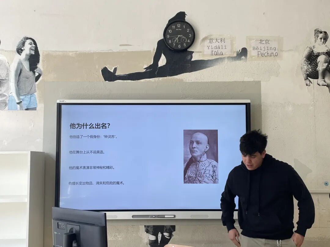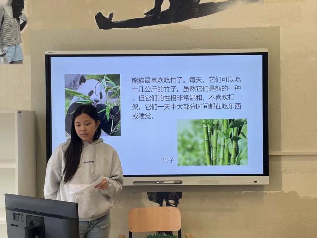 每位学生都精心准备,通过图文讲解、现场展示等形式,呈现出一场精彩的文化体验。有的学生介绍了中国骑马文化,讲述了古代马术的发展以及马匹在中国历史中的重要地位;有的学生由于对魔术怀有浓厚的兴趣,选择介绍一位极具魅力的魔术师。不仅如此,他还在课堂上表演了一个精彩的魔术节目,瞬间吸引了大家的注意;还有的学生以国宝熊猫为主题,分享了其生活习性及其在中华文化中的象征意义;更有学生从汉服出发,讲解传统服饰的演变及其背后的礼仪文化,带领大家穿越千年,领略古韵悠长的中华风采。此次中文日活动不仅充分展示了学生们的汉语表达能力,也体现了他们对中国文化的理解与热爱。