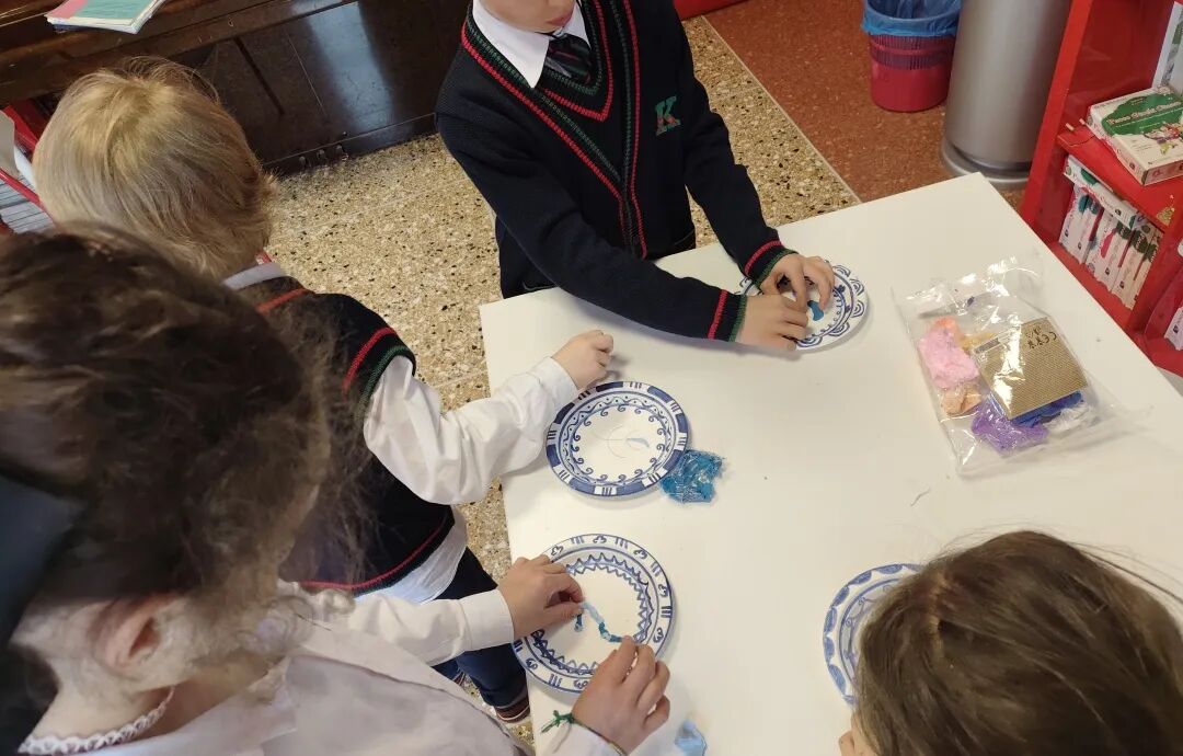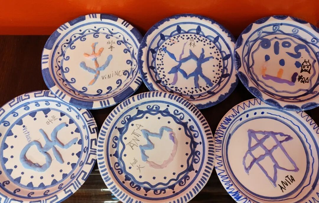 据《淮南子》记载,仓颉造字成功后,天降谷子雨以示庆贺,因此人们将这天定为“谷雨”。当地时间4月14日,崔老师以此为设计灵感,带领孔院下设孔子课堂Kinder College小学二年级的学生开展了以“当青花瓷邂逅甲骨文”为主题的活动。活动现场,一次性纸盘化身文化载体,学生们以青花瓷经典纹样为底,蓝白相映间勾勒出冰裂纹等传统纹饰。在留白处,甲骨文“山”“水”等象形文字跃然盘上,龟甲裂纹般的笔画与青花釉色相得益彰。此次活动,像是一场跨越时空的文化之旅,让古老的甲骨文在孩子们的指尖绽放出新的生命力,文化交流的意义也在此刻变得真实可感。