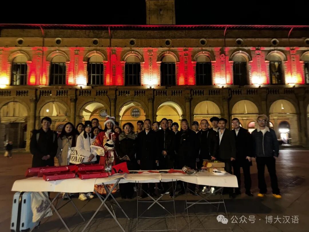 当地时间1月28日晚,博洛尼亚大学孔子学院在旅意中区华侨华人联谊会、博洛尼亚大学学联、博洛尼亚美术学院学联的协助下,在博洛尼亚大广场(Piazza Maggiore)举办新春庆祝活动,与意大利民众共同迎接中国蛇年春节的到来。