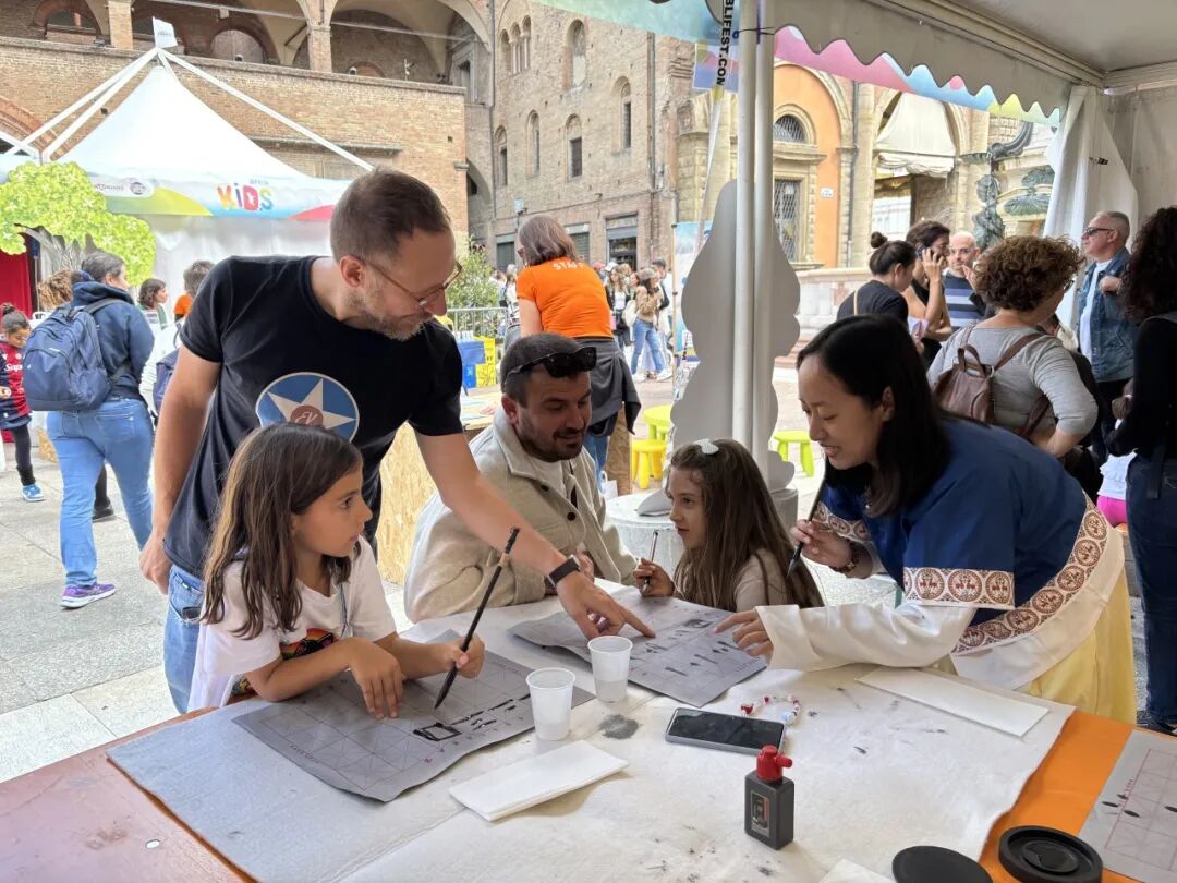 当地时间9月28日,博洛尼亚大学孔子学院受意大利极具影响力的“金币之城”文化活动主办方诚挚邀请,精心策划并成功举办了一场别具一格的中华文化体验活动。这场活动自上午十点起,一直持续至傍晚时分。活动现场,书法、剪纸、中国结等极具代表性的中国传统艺术形式一一亮相,宛如一幅徐徐展开的中华文化画卷,为当地市民,尤其是孩子们,开启了一场身临其境的中华文化探索奇妙之旅。