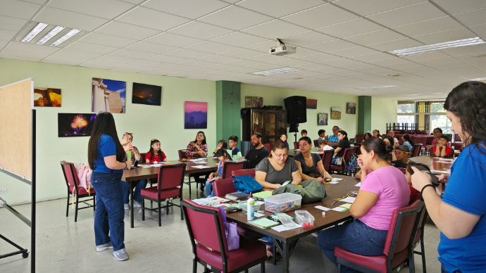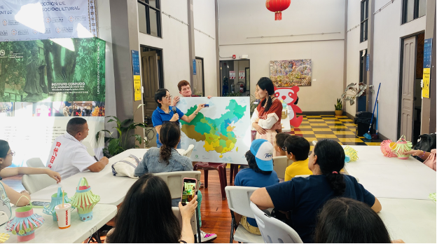 紧接着,哥斯达黎加大学孔子学院教师团队于1月21日和22日将本次文化工作坊带到了卡塔戈文化中心。此次活动由孔院行政主管安德雷亚、文化副主管黄幸安、图书管理员安娜、公派教师陈芮、张曼、张梦丽,以及汉语教师志愿者张茜、吴昀美共同组织。两天内,共有60余名当地民众积极参与,沉浸式体验中华文化的独特魅力。