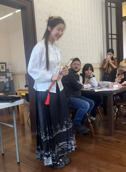 最后,汉语教师志愿者吴昀美为大家带来了悠扬动听的巴乌吹奏表演,演绎了《月光下的凤尾竹》《荷塘月色》和《神话》。现场琴声婉转,余音绕梁,观众沉浸在悠久深邃的东方旋律中,感受音乐与文化交融的独特韵味。