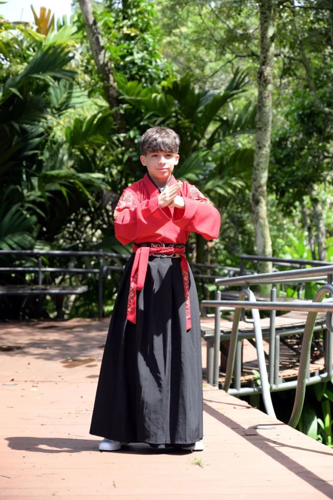 在孔子学院活动现场,哥斯达黎加学生兴致勃勃地试穿湖南元素的中式服饰。通过亲身体验,他们近距离感受到中华传统服饰的工艺之美与文化韵味。现场氛围热烈,成为跨文化交流中最生动的一幕。