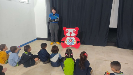 首场面向低龄儿童,以“神奇小书”为主题,通过熊猫手工游戏教授“红色”“你好”等基础词汇,孩子们将彩纸贴在熊猫图案上,在动手实践中快乐学中文。第二场活动中,学生们共读成语故事《缘木求鱼》,在小组讨论中理解寓意,并用画笔创作主题画作。第三场的高年级学生则深度参与《拔苗助长》情景剧表演,通过角色扮演体会成语哲理。