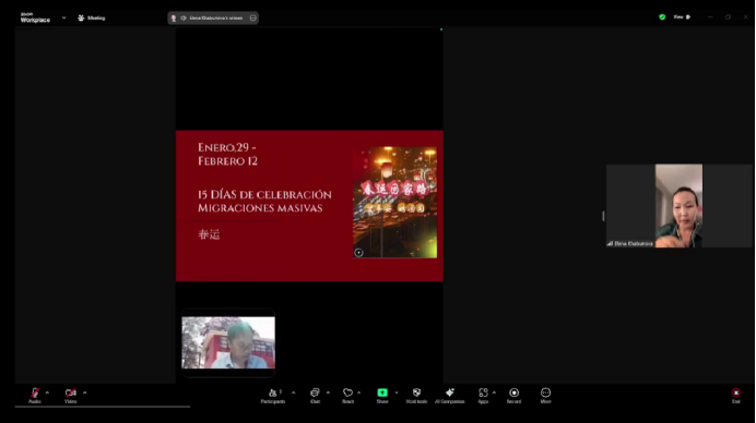 团圆佳节,春运盛况: 艾莲娜老师介绍,中国人非常注重团圆,春节期间,数以亿计的民众从工作的大城市返乡,与家人团聚。这一年度盛况号称是“世界上最大规模的人口迁徙”,各类交通将会迎来全年最繁忙的时刻。因此,她建议有意赴华旅游的哥斯达黎加民众尽量避免在春节期间出行。