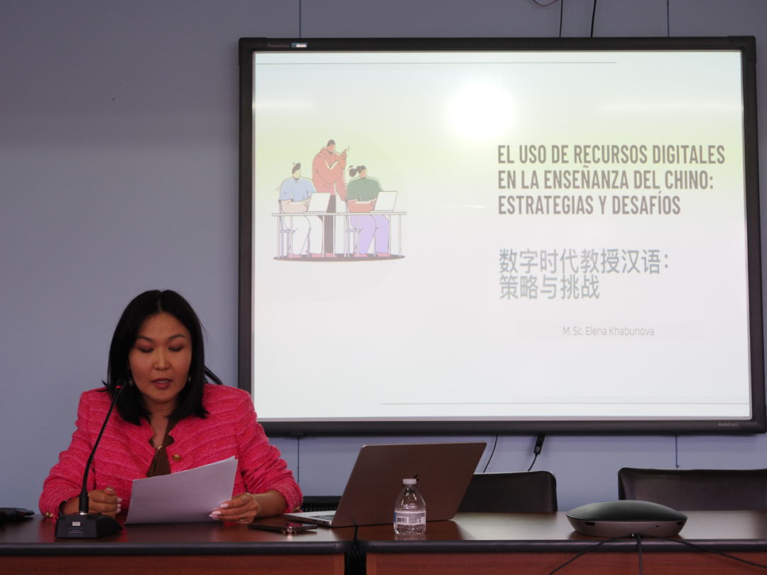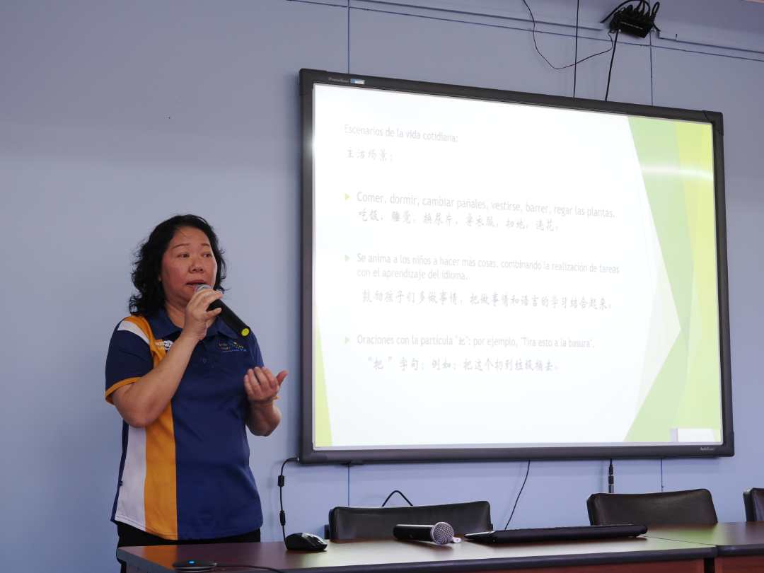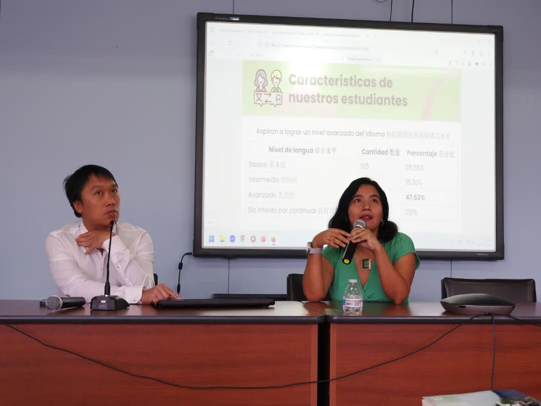 哥斯达黎加大学孔子学院中方公派教师倪洁漫做题为“提升学生参与度的汉语课堂互动策略”的报告