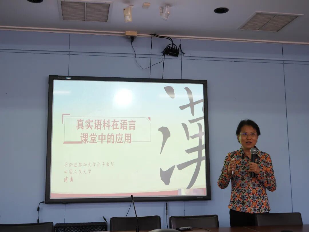 哥斯达黎加大学孔子学院中方公派教师傅由做题为“真实语料在汉语课堂中的应用“的报告