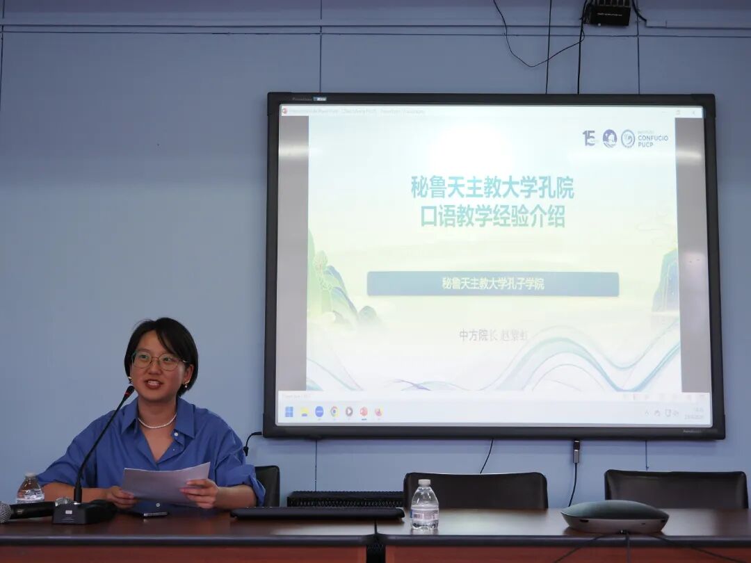 秘鲁天主教大学孔子学院中方院长赵黎红做题为“秘鲁天主教大学孔院口语教学经验介绍”的报告