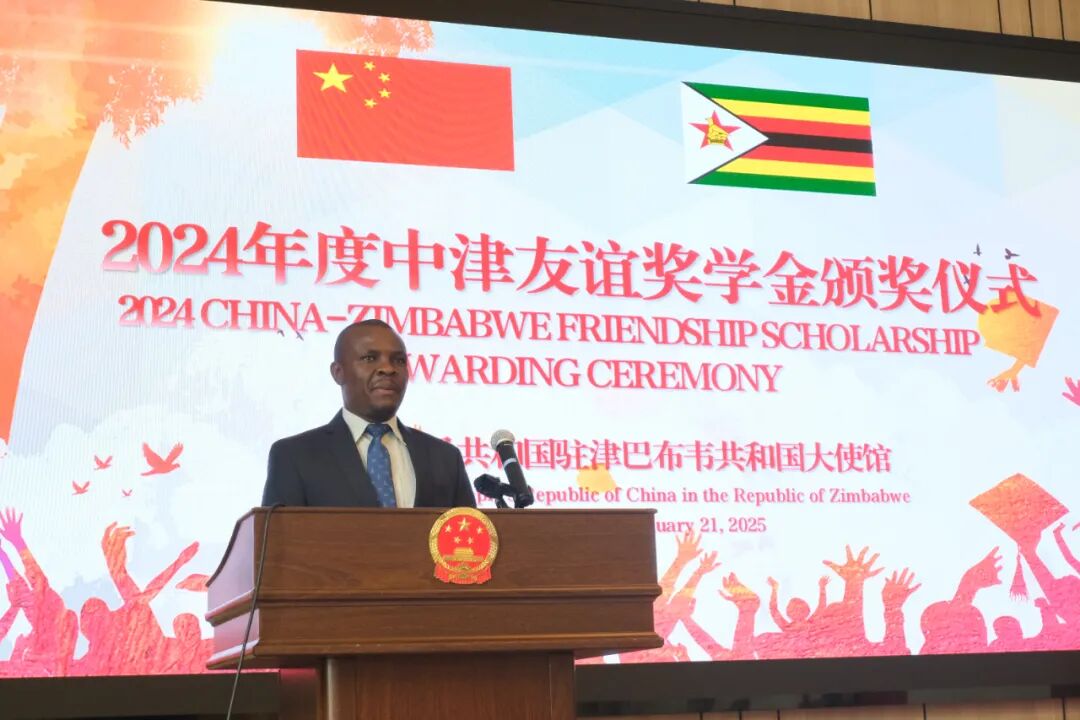2025年1月21日,津巴布韦大学孔子学院及其教学点部分师生受邀参加了中国驻津巴布韦大使馆举办的“中津友谊奖学金”颁奖仪式。中国大使馆为津大孔院及其中文教学点的部分优秀学生提供奖学金,旨在激励品学兼优的津巴学生在学好课内功课的同时,坚持不懈刻苦学习中文,积极参与推广中华文化等各类活动,并取得优异成绩。