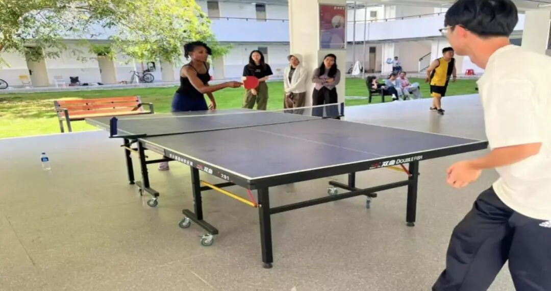 我们还打了乒乓球,这是一项非常有趣且富有参与感的活动。亲身实践学习这项运动及其技巧,令人十分兴奋。