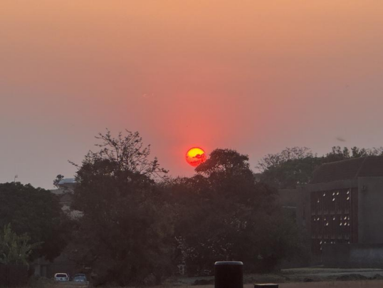 Harare's pleasant climate and abundant sunshine formed my first impression of the city. At dawn, sunlight bathes the courtyard, illuminating every green plant with vibrant energy and filling me with joy for the day ahead. The evening sun creates a dreamlike spectacle—its crimson glow painting the sky golden-red, leaving me frustrated that my phone could not capture this fleeting beauty. Currently in Harare, it is a dry season, and the stark temperature difference between morning and evening makes one feel like "wearing cotton jackets in the morning and sheer gauze in the afternoon." Though the land remains parched, the rainy season will surely arrive, bringing the blooming of beautiful jacaranda trees across the region.
