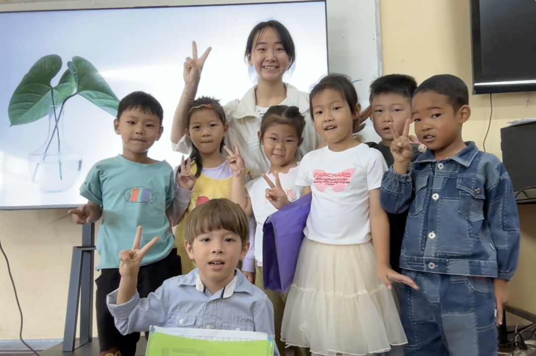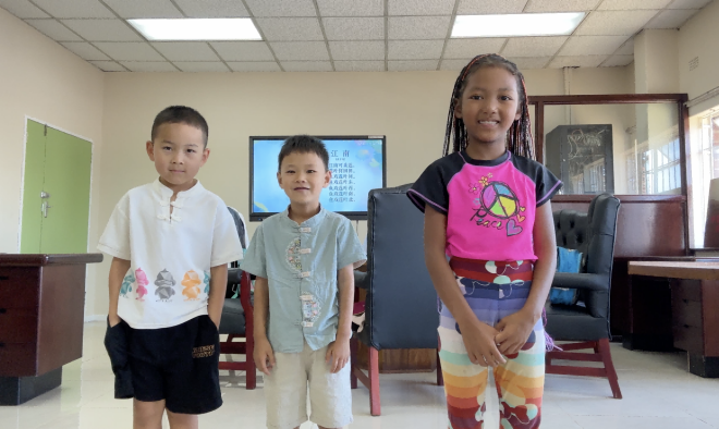 除了HSK4级的学生,我还有一群可爱的中国小朋友学生。我先后带领了十余名小朋友的中文社会班,学段集中于一年级预备班和一年级。起初,我一度因为这个年龄段的课堂管理难度倍感压力。但随着日复一日的相处,我发现了每个孩子的独特之处,我并非在面对一群孩子,而是面对一个个活泼可爱、天性迥异的他们。当他们整齐划一地唱出汉语拼音歌,开心时无意哼唱《勇气大爆发》,自信地朗诵“江南可采莲……”,一笔一划写下“天 地 人”时,我知道,我在他们身上多少留下了些什么。同样,他们也在我这里留下了更宝贵的东西。