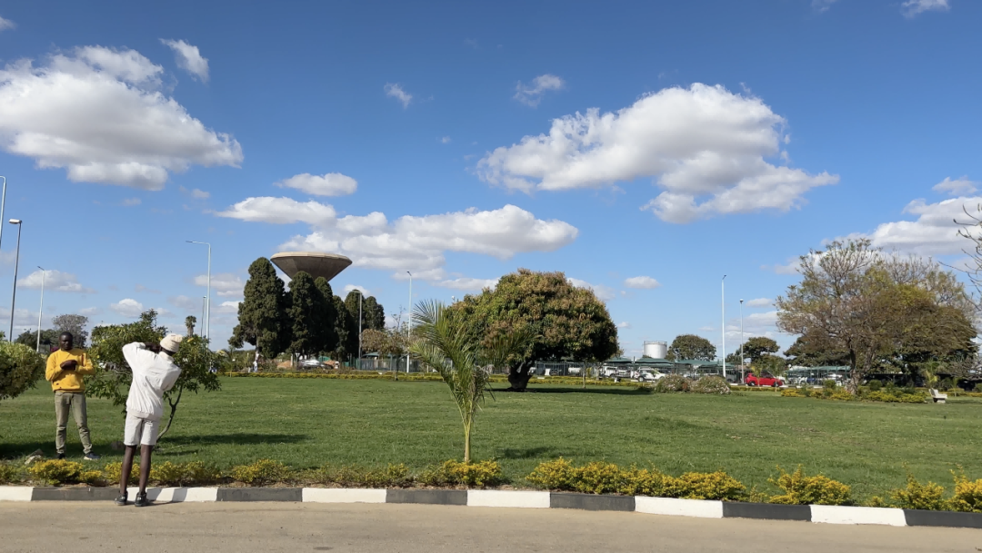 Meeting Prof. Li and Mr. Guo eased my tension. From above, the land had looked dry and ochre, but as we drove out of the airport, the roadsides grew lush and green, and white clouds drifted in clusters across the brilliant blue sky. I rolled down the window and felt the first breath of Zimbabwe’s wind. The fatigue of travel, the unease of the unknown—all dissolved at once. I was so excited that I kept filming, feeling a childlike curiosity toward everything before me.