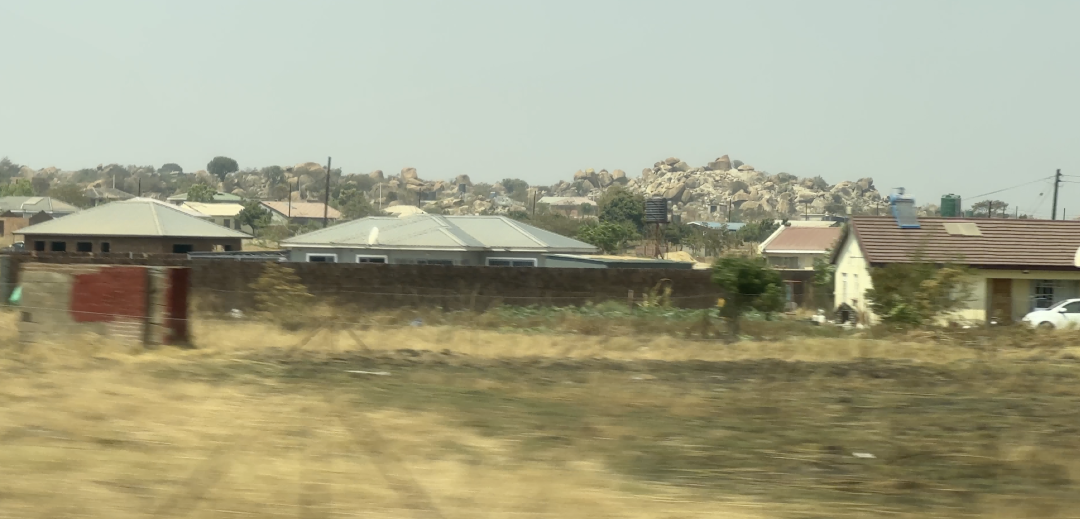 我们清晨出发前往布拉瓦约,一行七人乘着的白色小巴车。从首都哈拉雷出来,一路向西南深入大陆。布拉瓦约是津巴布韦的第二大城市,在西南与哈拉雷遥相对望。连接两大城市的就是普通的双向车道,铺了一层薄薄的沥青,时不时还有高高凸起的减速带。路况不算好,我们在后排时常被高高颠起,舟车劳顿睡不踏实,反倒给了我机会戴着耳机看看沿路风景。