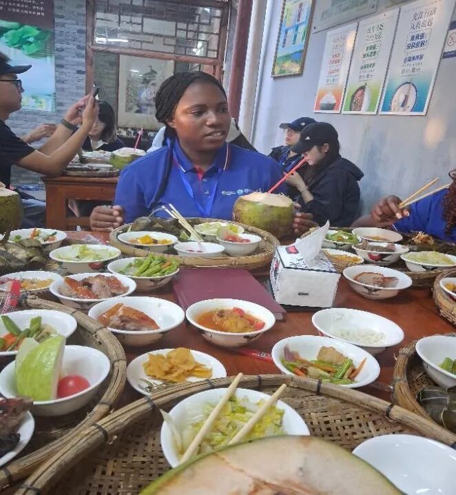 在中国期间,我最享受的还有美食,尤其是风味独特的传统菜肴和令人垂涎的火锅。每一餐都带来新的口感、新的调料和来自不同地区的美味。最难忘的是火锅体验。我们围坐在热气腾腾的锅边,将蔬菜、肉片、豆腐和面条放入锅中现煮,边吃边聊,欢声笑语不断。这不仅是一顿饭,更是一种文化的分享,让我们在温暖与喜悦中拉近了彼此的距离。