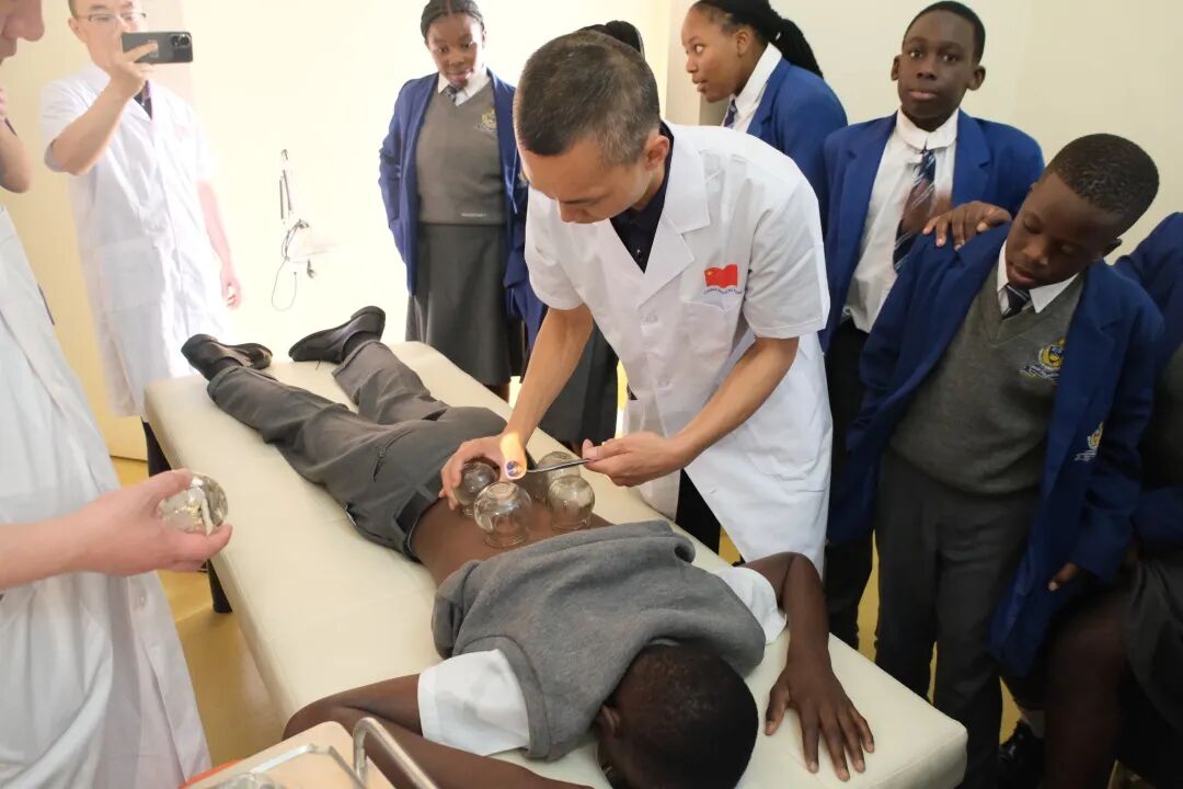 此次访问的亮点之一是探索中国传统的中医治疗方法,包括针灸、草药和拔火罐。当学生们了解到针灸——一种将细针插入人体特定穴位以促进康复和平衡的疗法时,一位学生说道:"我之前不知道针灸的存在,而且也没想到使用针灸竟然不会感到疼痛!"这激发了学生们对替代医疗实践的新认识,挑战了他们对疼痛和治疗的偏见。