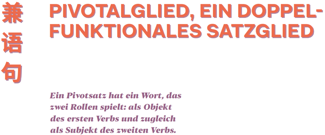 Ein Pivotsatz hat ein Wort, das zwei Rollen spielt: als Objekt des ersten Verbs und zugleich als Subjekt des zweiten Verbs.