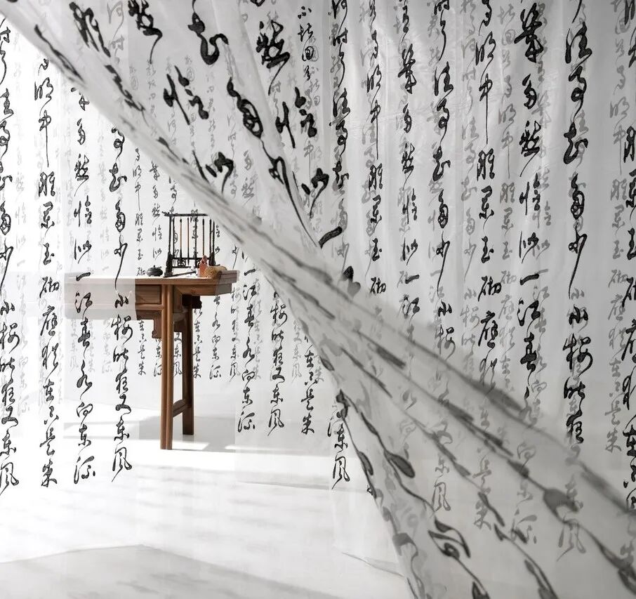 Die chinesische Kalligrafie ist eine Kunst der Linie. Betrachter:innen können Schriftzeichen und Text außer Acht lassen und sich direkt dem räumlichen Bild der Linien widmen. Diese Linien – ob gerade oder gebogen – entstehen durch den freien Schwung der Hand. Mit einer leichten Bewegung des Handgelenks kann ein:e Kalligraf:in die Linien stark und dick erscheinen lassen.