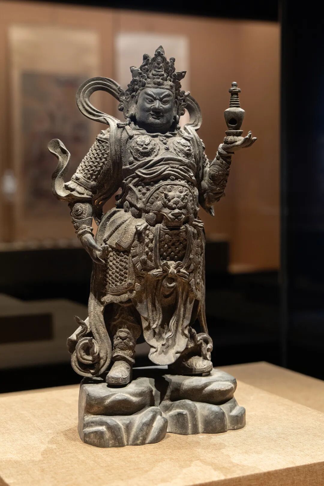Daher erlebte der Vaiśravaṇa-Glaube in der Tang-Dynastie eine Blütezeit, und es gab bildliche Darstellungen zu seiner Verehrung. Der dritte Sohn des Himmelskönigs, Prinz Nata (Nezha), trug stets einen Pagodenstupa und begleitete den Himmelskönig. Während der Tang-Zeit verkörperte Nezha einen pflichtbewussten und gehorsamen Beschützer des Dharma, der in harmonischer Verbindung mit seinem Vater, dem Himmelskönig Vaiśravaṇa, stand. Während der Han- und der Tang-Dynastien bildete die Seidenstraße den kulturellen Pfad, über den Nezha in die zentralchinesischen Gebiete gelangte. Auf diesem Weg löste er sich allmählich von seinem einst folgsamen Begleiterimage und entwickelte eine eigenständige, markante Persönlichkeit.
