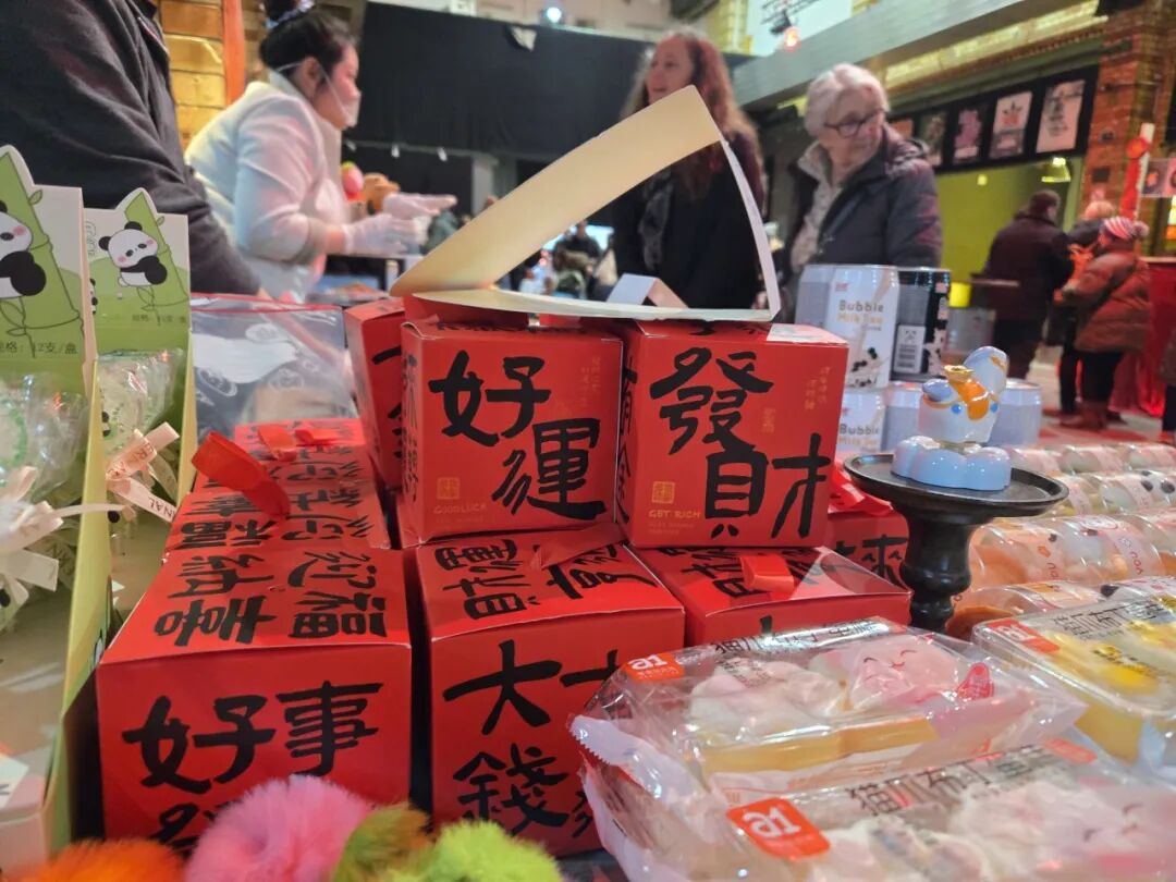 锣鼓、舞狮、贴楹联、印福字、编手链、中国结、高高挂起的红灯笼、恭喜发财的财神爷,再加上包子、辣酱、成都凉面,陕西肉夹馍等等现场制作的特色美食小吃:这过年的气氛,可不一下就上来了!