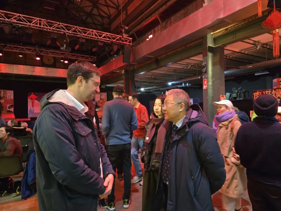 刘立新公使参赞、喻菲老师与参加春节庆祝活动的当地公众亲切交谈