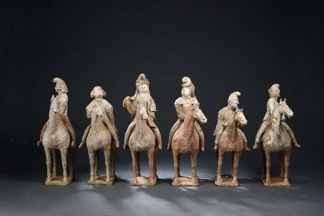 Bemalte Tonreiterfiguren.