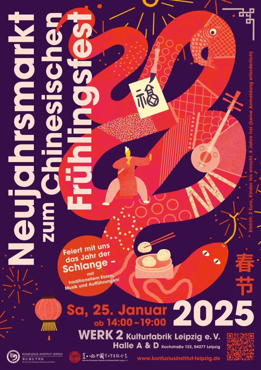 本月25日,和莱比锡孔院一起到莱比锡Werk 2 欢庆春节,迎接中国蛇年的到来吧!