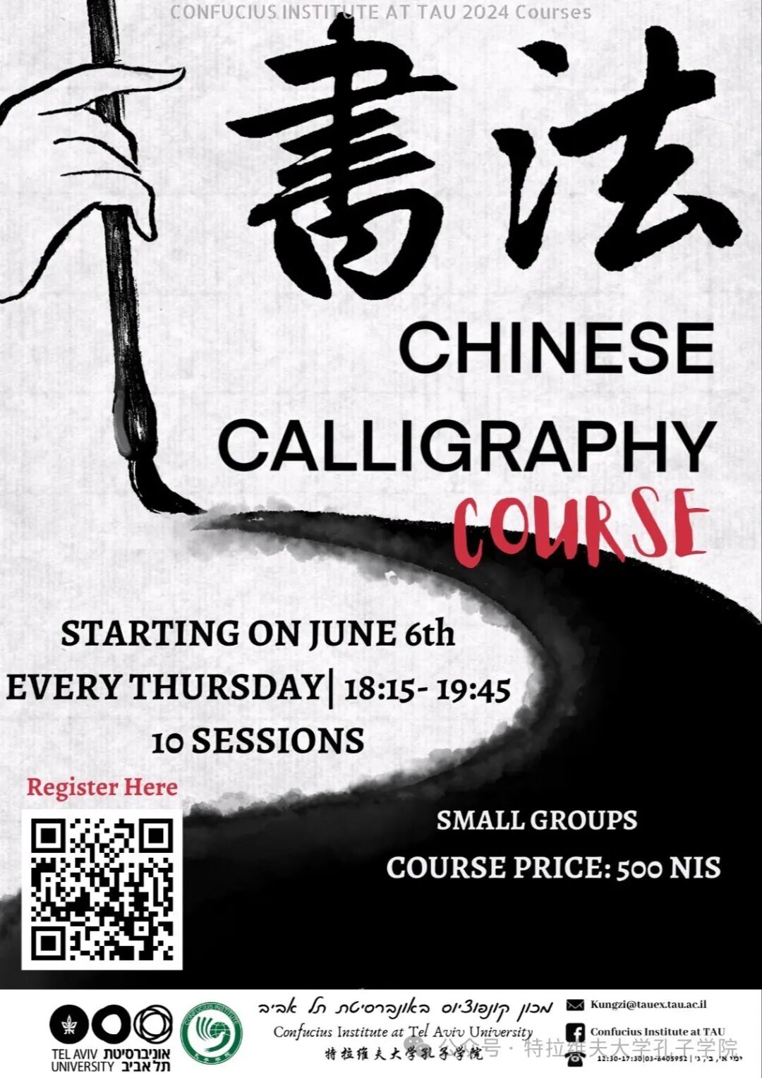 为提供多种文化体验,让特大师生深度了解中国文化,特大孔院本学期开设了一系列关于中国传统文化和艺术的课程。如果你想学习这些课程的话,根据海报上信息快快报名吧!