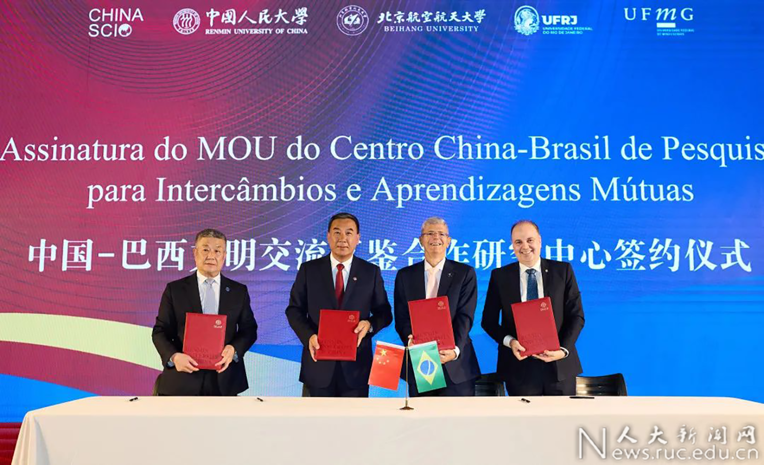 中国人民大学、北京航空航天大学、巴西里约热内卢联邦大学、巴西米纳斯吉拉斯联邦大学签署共建中国—巴西文明交流互鉴合作研究中心协议。