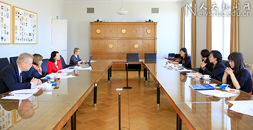 5月23日上午,靳诺书记一行在赫尔辛基大学国际交流处负责人Anna-Maria Salmi的陪同下,会见赫尔辛基大学法学院院长基莫·诺迪欧(Kimmo Nuotio)、社会科学学院院长Hannu Nieminen、理学院院长Jouko Väänänen和人文学院副院长Matti Miestamo,双方围绕高等教育宽口径改革、学科间国际交流、教师教学方法等问题进行深入探讨。