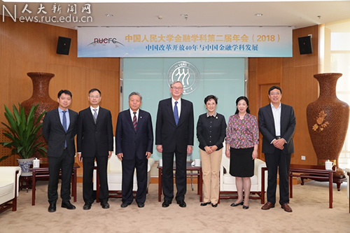 科研处处长严金明,财政金融学院院长庄毓敏、副院长赵锡军,重阳金融研究院执行院长王文参加会见。
