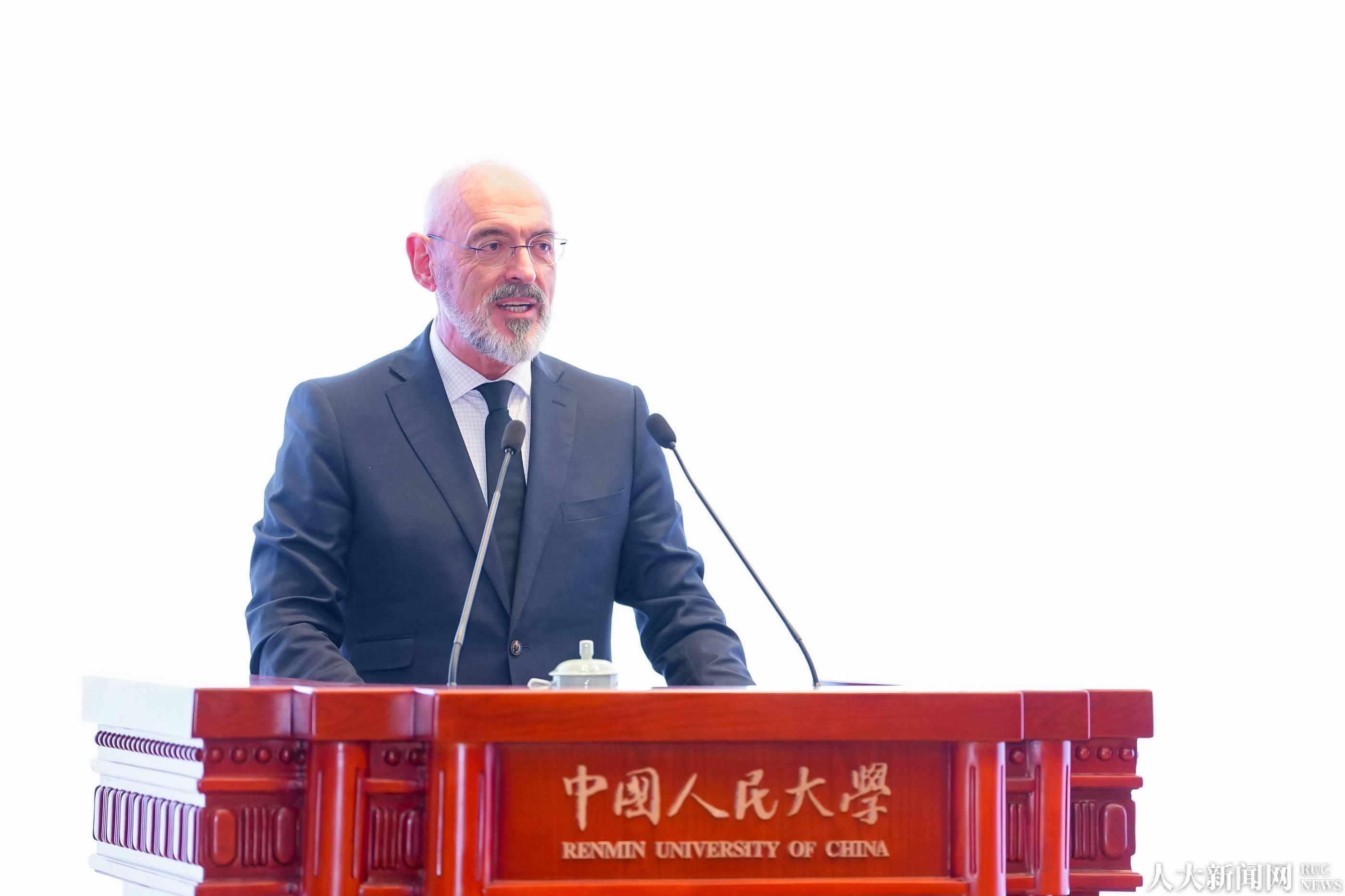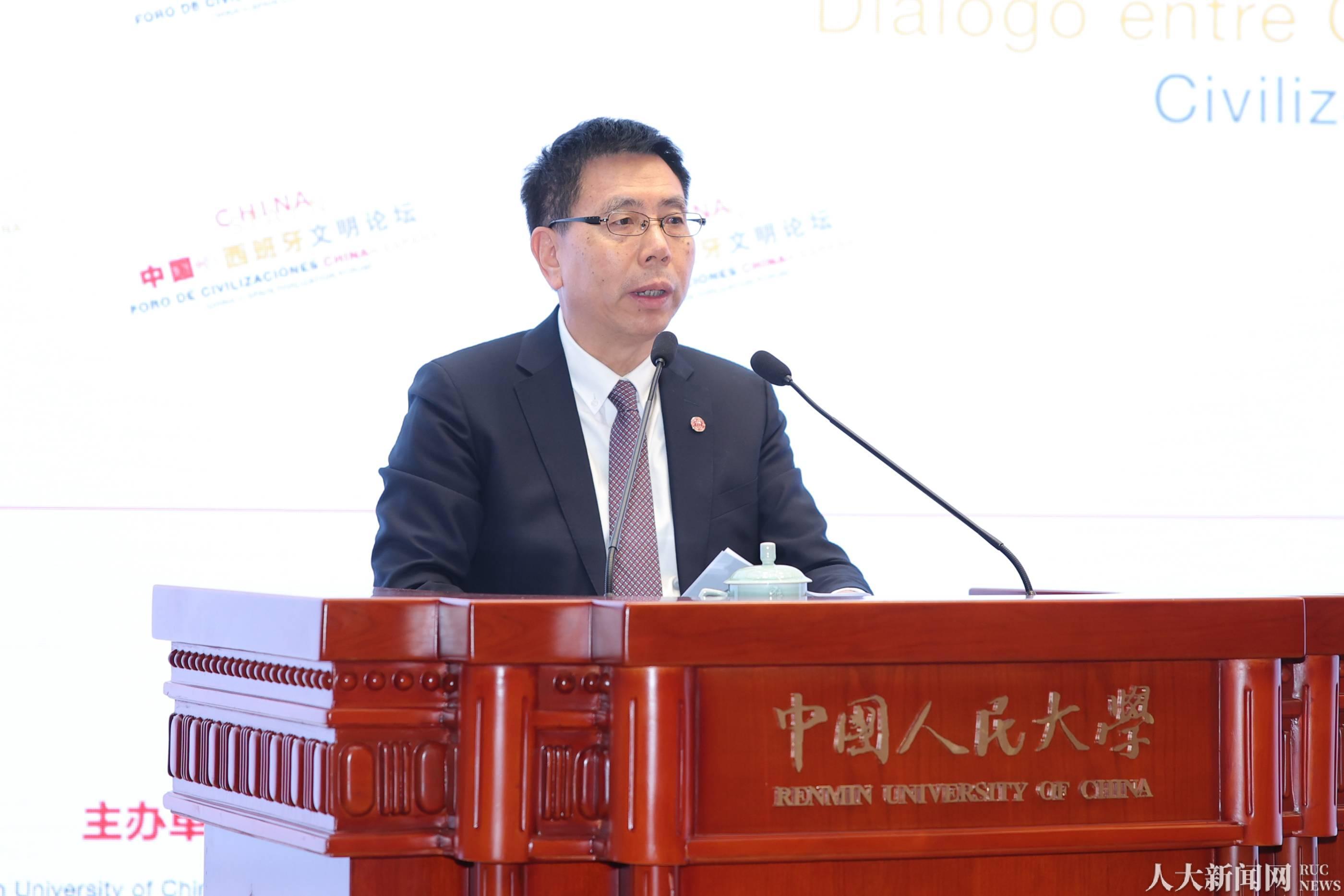 华金·戈亚许·戈尼表示,本次论坛不仅是一场学术盛会,更是一次文明间的深度对话。在全球变革的时代背景下,要通过教育、思考与合作,增进理解、凝聚共识。大学肩负着传播知识、培育价值观的重要使命,应激励青年一代理解与尊重文明多样性,为建设更加公正、可持续的世界贡献力量。当前,马德里康普顿斯大学和中国人民大学携手创建的“中国—西班牙文明交流互鉴合作研究中心”,已经成为两国科研、教学与文化交流的重要桥梁。本次论坛的召开是中心发展的重要里程碑,将促进激发新思想,开辟对话新路径。希望双方继续以尊重、创造力与友谊为纽带,共同努力、深化合作,使彼此的合作成为知识与灵感的不竭源泉。