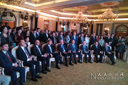 上合组织成员国驻华使节,欧盟、东盟等国际组织代表、中外学者、实业界人士及媒体代表等近400人也参加了招待会。