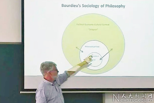 暑期,在中国人民大学一间教室里,美国威廉姆斯学院George T.(Sam) Crane教授正在引导着来自中国的学生们阅读英文译本的《论语》和《孟子》,让他们理解英文语境下的中国传统哲学思想。这是他第四次在国际小学期面向人大学子和来自全球的学生讲授“儒学在美国”这门课程。