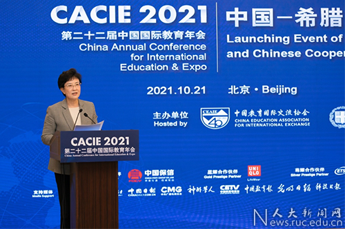 10月21日下午,由中国教育国际交流协会主办的中国—希腊高等教育交流合作咨询委员会成立仪式暨中国—希腊高等教育合作研讨会以线上线下结合形式举办。中国人民大学党委书记靳诺出席研讨会,并作总结发言。