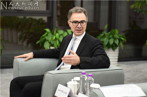 José MILANO回顾了两校在中法学院筹备和发展过程中的美好合作经历。他说,在过去几年合作办学过程中,中法双方在互相尊重、互相信任的基础上,共同历经困难、克服阻碍,最终取得今天的成绩。在中法学院未来发展中,KEDGE商学院将进一步投入优质的教育资源,与中国人民大学开展更加深入的合作,共同培养出具备社会责任感、可以适应时代发展的创新性金融人才,为中法两国经济社会发展做出积极贡献。