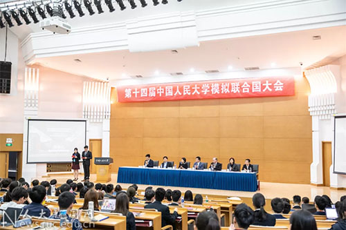 中国人民大学模拟联合国大会作为学校的一项传统学生活动,始终致力于引导广大青年聚焦国际热点,关心时事政治,彰显青年人的历史使命与时代担当,培养胸怀家国、面向未来、肩负使命的跨文化交流人才。第十四届中国人民大学模拟联合国大会讨论“英国脱欧”“非洲和平与安全”“人工智能背景下的劳工权益保护”“儿童权益保护”等多个议题, 尝试以当代学生的青年之思为当今国际问题的解决提出带有青春气息的新方法、新思路。