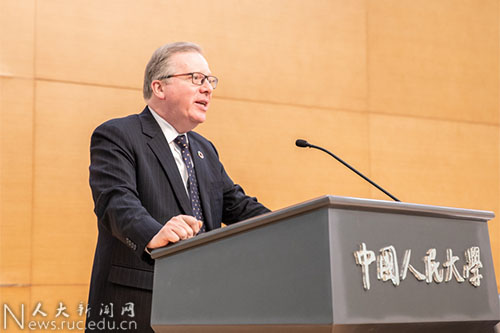 19日上午,大会开幕式在逸夫第一报告厅举办。中国人民大学校长刘伟、联合国驻华协调员罗世礼(Nicholas Rosellini)、中国联合国协会副总干事王颖、共青团中央国际联络部副部长张晓羽等出席开幕式。