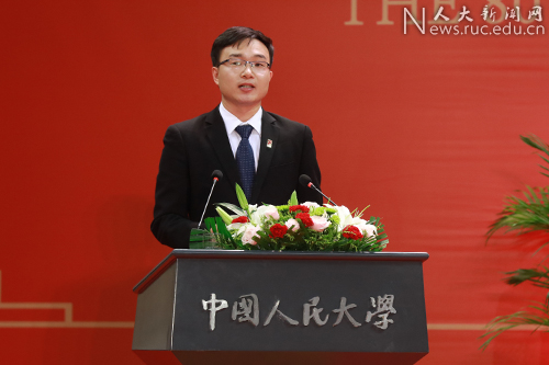 新闻学院2017级博士研究生周晓辉作为在校生代表发言。他表示,人大80年,自己有幸陪伴8年,在未来的岁月里,也将永远与她血脉相连。自己所取得的成绩都是因为站在母校的肩膀上,母校在帮助他构建知识象牙塔的同时,也帮助他磨砺出行动的利刃,以实际行动不负校名中“人民”二字。这块名叫母校的土地不辜负理想主义者的情怀,也不辜负实践者的劳动。从开始、现在到未来,母校始终与自己同在。