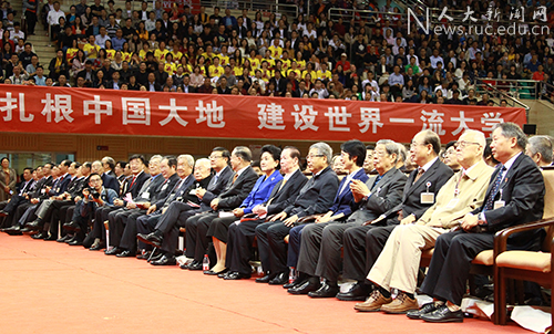 部分中央和国家机关、省区市、企事业单位领导,各国驻华使节代表,中国人民大学校领导靳诺、刘伟、张建明、王利明、吴付来、洪大用、贺耀敏、吴晓球、郑水泉、刘元春、杜鹏以及各学院、部处负责人代表、海内外校友代表、在校师生代表参加大会。