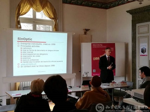 当地时间11月25日,瑞士日内瓦大学孔子学院举办以“中瑞关系”为主题的“一日中国”系列讲座。活动由四个专题讲座构成,吸引了40多名听众报名参与。
