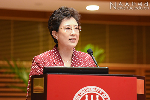 靳诺代表中国人民大学全体师生员工对澳门校友会的成立表示祝贺,对一直关心和支持中国人民大学建设和发展的澳门社会各界人士表示感谢。她指出,长期以来,中国人民大学重视与澳门特区的交流与合作,在澳人大校友在社会各界享有巨大的影响力和良好的社会声望,在澳门政治、经济、文化、社会发展等各领域的关键岗位发挥着不可或缺的重要作用。