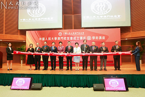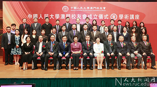 9月1日上午,中国人民大学澳门校友会成立大会举行。中联办常务副主任张荣顺,中国人民大学党委书记靳诺,澳门特区政府行政法务司司长陈海帆,澳门特区政府社会文化司司长谭俊荣,中国人民大学副校长杜鹏,澳门基金会行政委员会主席吴志良,全国政协委员、澳门特区立法会副主席、人民大学澳门校友会创会会长崔世昌,全国政协常委、人民大学澳门校友会荣誉会长马有礼,人民大学澳门校友会监事长赵国强等嘉宾出席大会。
