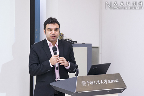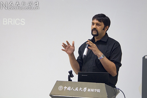 《印度快报》城市版主编纳伦德拉·阿普瓦通过对印度媒体、中国媒体和西方媒体在金砖峰会前对中印边界争议的报道和金砖峰会期间转向关注峰会相关报道的关键词分析,向大家展示金砖峰会如何有效扭转有关中印报道的媒体议程。金砖峰会之前,“印度”“中国”“战争”是中印报道中排名前三的关键词;金砖峰会启动后,“BRICS”跃居前三,负面词汇排名急剧下降。他认为金砖峰会有效缓解了中印此前的紧张关系。此外,他认为锻炼跨媒体报道能力对记者十分重要,由于人力有限,一名记者往往需要同时担负摄像、录影和撰写文字报道等多项任务。