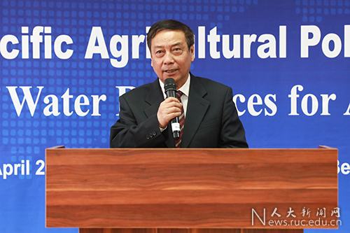 4月20日,2016亚太农业政策圆桌会议(Asia-Pacific Agricultural Policy Roundtable)在中国人民大学举行。本次大会的主题是“农业水资源可持续管理与粮食安全”。中央财经领导小组办公室副主任、中央农村工作领导小组副组长兼办公室主任、中国人民大学农业与农村发展学院名誉院长陈锡文出席大会开幕式并作主旨演讲,中国人民大学副校长洪大用出席开幕式并致辞。亚太农业政策论坛理事会主席、韩国农业部原副部长李相茂(LEE Sang Mu),菲律宾土地改革部副部长Herman Z. Ongkiko,亚太农业政策论坛理事会理事、缅甸国家经济社会顾问委员会主席Tin Htut Oo,亚太农业政策论坛理事会理事、中国人民大学农业与农村发展学院院长唐忠,以及来自联合国粮农组织、中国、韩国、澳大利亚、荷兰、日本、印度、印尼、泰国、越南、缅甸、马来西亚、尼泊尔等亚太地区18个国家的专家学者共60余人参会。
