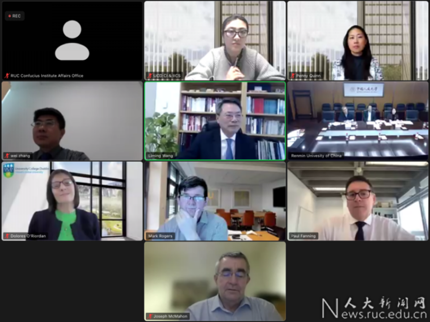 3月30日下午,中国人民大学合作共建的爱尔兰都柏林大学孔子学院第十五次理事会会议召开。中国人民大学副校长杜鹏出席会议。