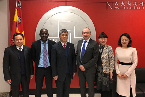 在到访芝加哥大学之前,代表团于4月16日访问了加拿大拉瓦尔大学,全面考察和了解该校创新创业教育及实践。在与拉瓦尔大学副校长Rénald Bergeron等进行交谈时,洪大用表示,拉瓦尔大学是一所办学特色鲜明的高等学府,能够为学生带来英语、法语双语环境的独特体验,具有连接北美、欧洲以及非洲法语国家的优势,是我校学生海外交流学习的理想学校。洪大用提出,双方应加大支持力度鼓励双方的人员往来,促进双方在更广泛的领域开展合作。