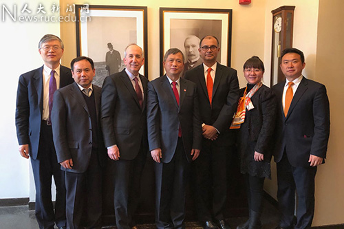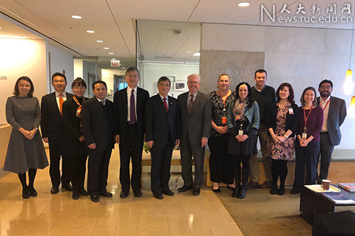 4月15-20日,中国人民大学副校长洪大用率团访问美国芝加哥大学,落实中美青年创客交流中心合作事宜,并顺访加拿大拉瓦尔大学,考察该校学生创新创业教育和实践开展情况。教务处处长兼创业学院副院长龙永红,招生就业处副处长兼创业学院执行院长周荣,文化科技园总经理白连永和国际交流处张大淼随团出访。